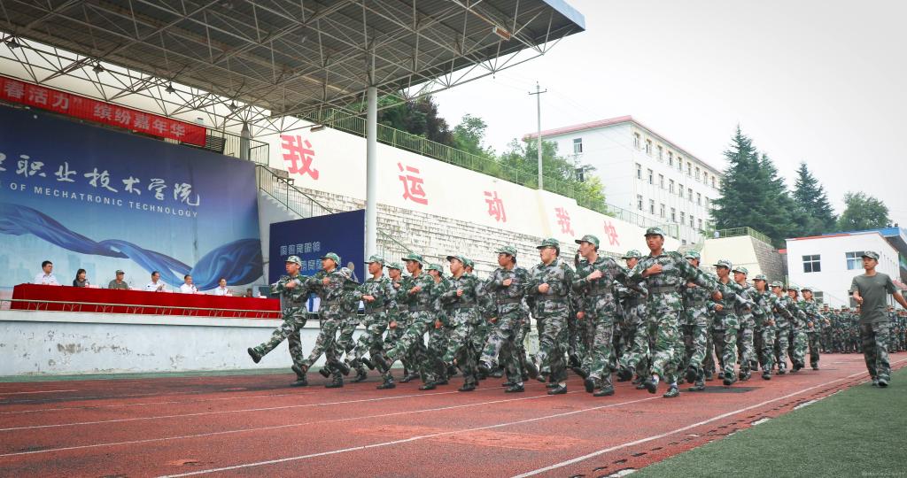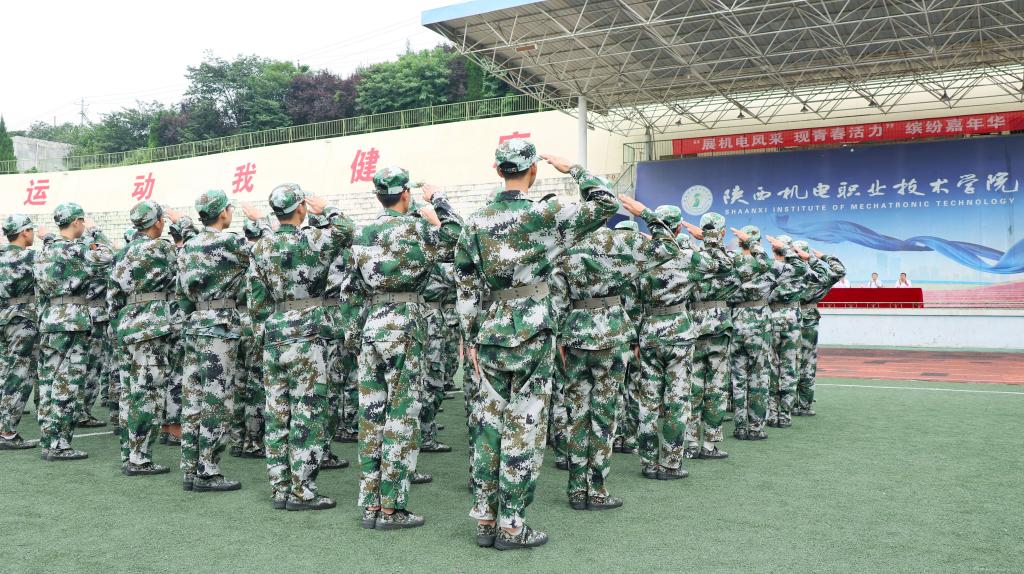 在奏唱《中华人民共和国国歌》后,参训学生汇报展示军训成果。嘹亮的口号、整齐的步伐、宏伟的军歌、威武雄壮的军体拳和擒敌拳,充分展现了机电学子刻苦训练的成果和奋发向上的精神风貌。