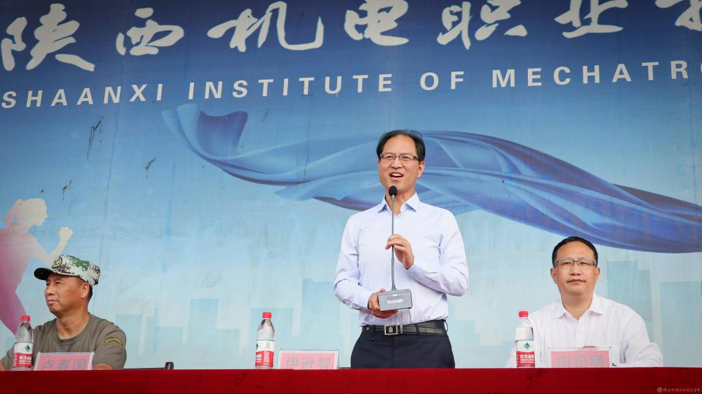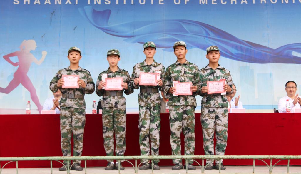 陕西机电职业技术学院2020级五年制新生军训总结表彰大会于9月12日上午在宝福路校区运动场隆重举行,对在军训中涌现出的先进集体、优秀辅导员、优秀教官、文明宿舍以及军训先进个人进行表彰奖励。学院党委书记伊逊智,党委副书记、院长向纪明,宝鸡市国防教育协会秦岭训练基地副主任卢春国,教务处处长白娟娟,团委书记杨鹏,人武部副部长常小凯出席。表彰大会由人武部部长王建斌主持。