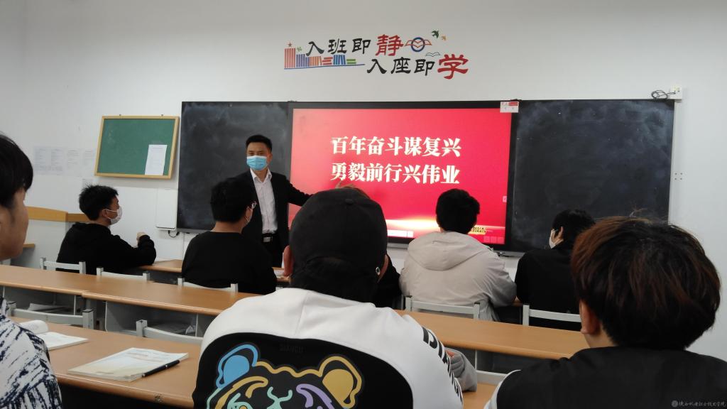 4月28日下午5-6节课,学院党委委员、副院长张新堂在博学楼316教室为20智能联培1、20智能联培2班学生讲授形势与政策课第一讲《百年奋斗谋复兴,勇毅前行兴伟业》。