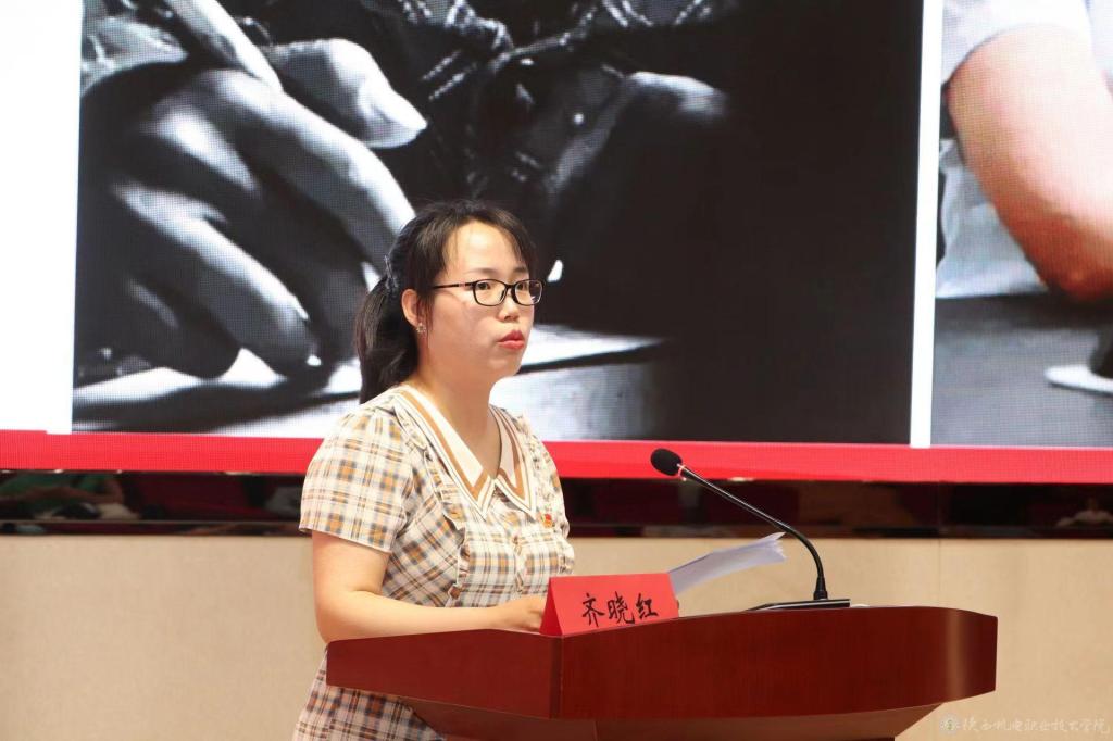 在当天的首场示范宣讲会上,3名“团市委青年讲师团”成员分别围绕学习宣传贯彻习近平总书记重要讲话精神,省、市党代会精神,青年成长成才方向作了主题宣讲。作为3位青年宣讲员之一,“团市委青年讲师团”成员、我校教务处齐晓红老师做了《学好百年团史 凝聚奋进力量》主题宣讲。